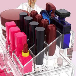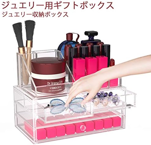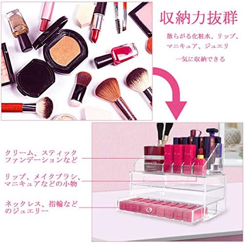 【整理超簡単】透明なので中身が一目瞭然、整理しやすくて、忙しい朝もメイク用品を探す事無く スムーズに使用する事ができますコスメやメイク道具といった化粧品を始め、ジュエリーやアクセサリーといった小物の収納に適しています。