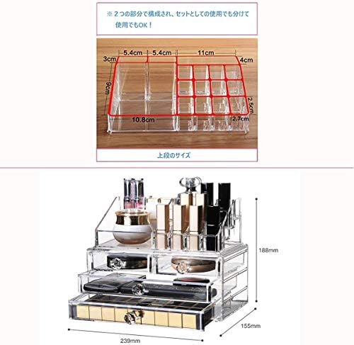 【製品仕様】:下段サイズ: 24*13*11cm 上段サイズ: 21*12*8cm 引きだしサイズ:22 x 13 x 3cm (大) 13x 11 x 3cm (小)