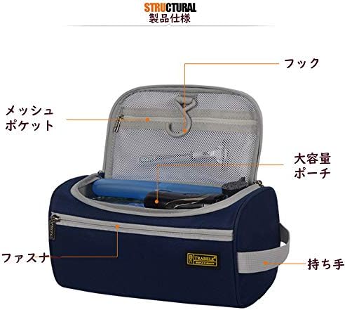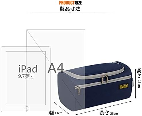 【製品仕様】材質:防水オックスフォードの素材で作り出した100%品質高い物です。 サイズ:25cm*13cm*13cm。 重さ:約0.19kg。 パッケージ内容:収納ポーチx1。 多用途:歯ブラシ、歯磨き粉、ブラシ、化粧品、乳液、シャンプー、シボディクリーム、シェービングフォーム、ェーバー、オーデコロンなどの小物は楽々と収納可能。