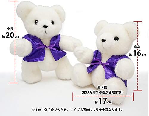喜寿ベアのサイズ(足を伸ばした時):高さ約20cm、横幅約17cm ※ひとつひとつ手作りのため、サイズが若干異なる場合があります。