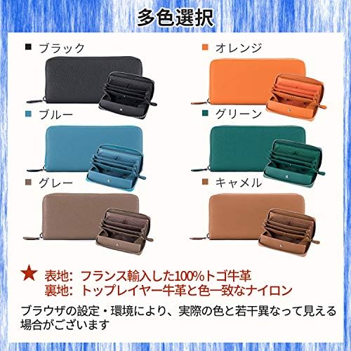 【高級素材】:お客様の声に応じて、高級感、ファッション性、機能性を兼ね備えた大人のラウンドジップ長財布で、す。表地:フランス輸入したトゴ牛革、裏地:トップレイヤー牛革。