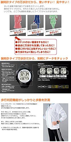 本体サイズ:幅3.6×奥行4.5×高さ1.5cm本体重量:33g材質:本体=ABS樹脂、透明部=アクリル、裏蓋=ステンレス、バンド=強力ポリウレタン歩数:0-99999歩歩行距離:0.00-99.99km消費カロリー:0.0-9999.9Kcal