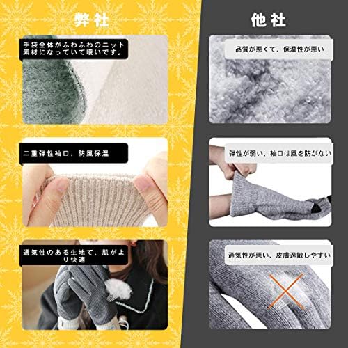 ☀【裏ボアで保温十分!】(ストレッチ性良い)袖口はリブ編みで程よく引き締める為、綺麗なシルエットを形成しながら、風の侵入を防いで防寒性に優れています。ふんわりとした柔らかく暖かみのあるニット素材で寒い季節に大活躍してくれる手袋。裏地がフリース仕様になっているので風を通しにくく、保温効果抜群。全体に風邪を通しにくく、保温・保湿に適してます。