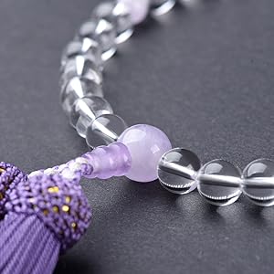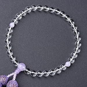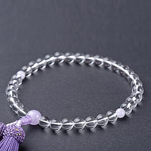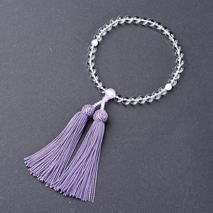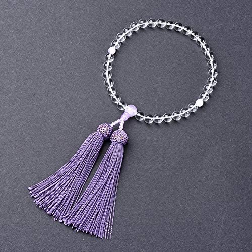 【特徴】:すべての宗派のお客様にお使い頂ける女性用のお数珠でございます。素材は、濁りのない艶が綺麗な本水晶でございます。アクセントには藤雲石を使用させて頂きました。お買い求め頂きやすい価格ではありますが、品質にはこだわり、お作りさせて頂いております。房は、もちろん正絹製でございます