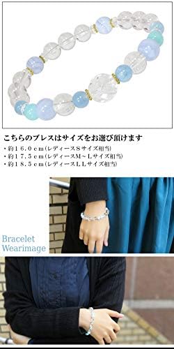 商品データ ●サイズ展開 ・約16.0cm(レディースSサイズ相当) ・約17.5cm(レディースM~Lサイズ相当) ・約18.5cm(レディースLLサイズ相当) ●ビーズ一覧 ・アクアマリン  約6mm 4玉 ・ブルーレース  約8mm 4玉 ・アマゾナイト  約6mm 2玉 ・カット水晶  約10mm 1玉 ・水晶  約8mm(玉数はサイズにより異なります) ・平カット水晶 6玉 ・メタルパーツ(金色)  6個 ・シリコンゴム使用