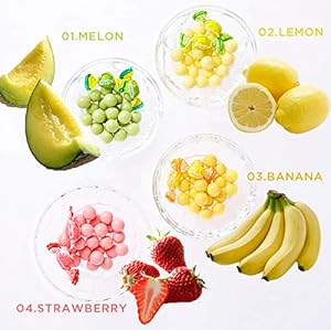 ブルーベリー、ストロベリー、レモン、バナナ、マンゴー、メロンの