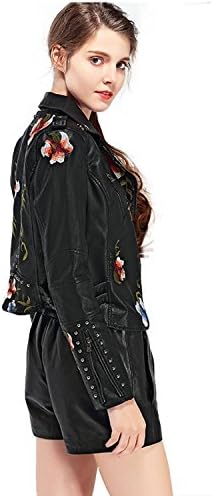 ◆ 花柄刺繍とリベットを入れている上品の合皮ライダースジャケットです♪普段のお出かけはもちろん通勤・通学にもぴったり。ON・OFF両方に活躍します。