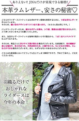 こちらのライダースジャケットはお求めやすい価格を実現するために、つぎはぎのレザーで作られています。そのため、縫い目のデザインが1つ1つすべて違います。(もちろん型は同じです。)パッチワークレザーのため、細かなボディの厚み、シワ感、質感はお選び頂けませんので、 ご了承くださいますようお願いいたします。また、当店のレザージャケットは独特の風合い とその製法から、1点1点ハンドメイドで仕上げ ております。そのため、商品ごとに多少サイズ感が異なる 場合がございます。