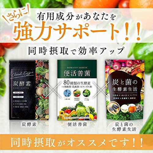 炭酵素 80種類の生酵素 3種の炭 サプリ コンブチャ 厳選8種配合 30日分