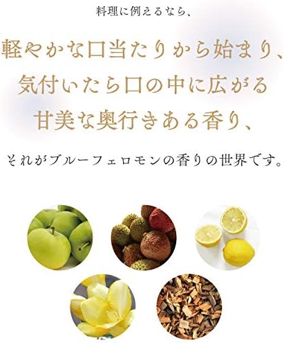 ブルーフェロモンの香りの世界を料理に例えるなら、軽やかな口当たりから始まり、気付いたら口の中に広がる甘美な奥行きある香り。