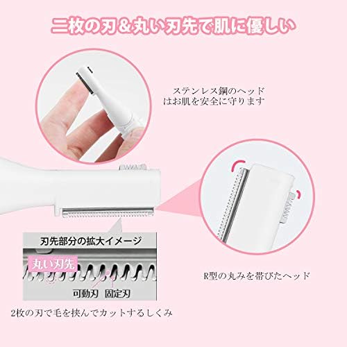 ✿【安全性抜群&剃り効率抜群】刃は0.12mm薄く、肌を傷つけにくい丸い刃の先で、高品質の切れ味長持ち精鋼ステンレス刃で肌に優しい剃り心地。電動眉毛カッターの刃はウワンド形状で、若い肌にも傷つけない、内側の動く刃(内刃)が直接肌にあたらないので、痛みや刺激を感じずに毛をしっかりと処理できて、敏感肌の方にも安心使用できます。