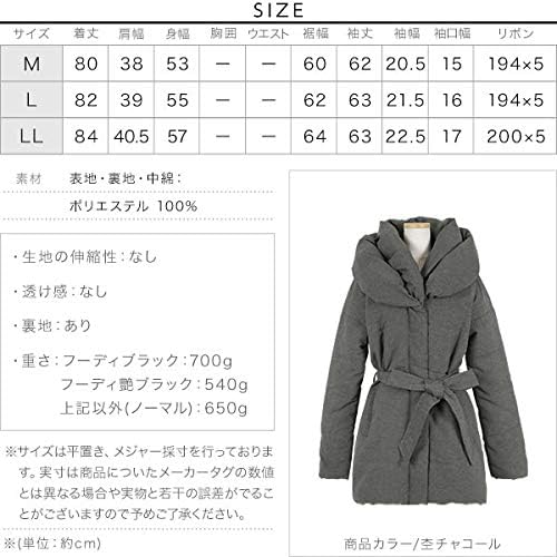 [実寸(cm)約]: 着丈(M/L/LL)…80/82/85 肩幅…38/39/40.5 襟開き幅…23/23/23.5 胸囲…102/106/111 ウエスト…96/100/104 裾周り…116/120/126 袖丈…62/63/64 袖周り…39/41/42 袖口…28/30/32 リボン…194×5/194×5/200×5 重さ…フーディブラック:700g/フーディ艶ブラック:540g/上記以外(ノーマル):650g