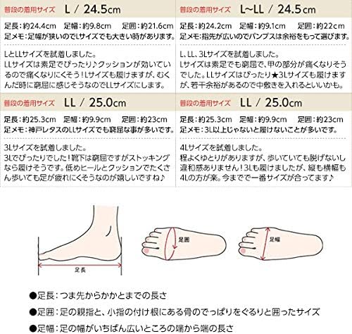 【3L】「24.5-25.0cm」 筒丈 6.5cm、足幅 8.2cm、 つま先口 8.0cm、甲幅 13.0cm 【4L】「25.0-25.5cm」 筒丈 6.6cm、足幅 8.4cm、 つま先口 8.1cm、甲幅 13.2cm