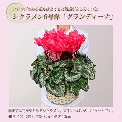 花鉢:シクラメン6号鉢植え「グランディーナ」、セット品:バスケット、しくらめんの育て方のしおり