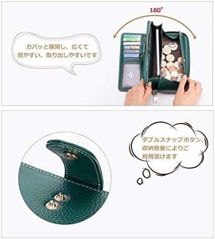 ✅【2in1仕様の多機能長財布】:本財布は2in1仕様で物を分類に整理します。スナップボタン式部分:主にカードとお札入れ用です。カード入れ×10、窓付きカード入れ×1、フリーポケット×4;ファスナー部分:主にスマホと小銭入れ用です。フリーポケット×1、お札はもちろん6.5インチのスマホでも入ります。カード入れ×6、ボックス型小銭入れ×1、ハンドストラップ×1。機能性を重視する方にオススメの財布です。