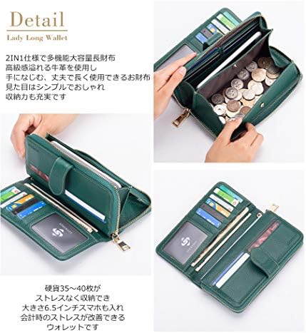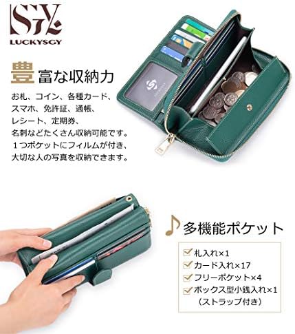 LUCKYSGY 長財布 牛革 財布 レディース 大容量 ブランドさいふ 二つ折り スマホ入れ BOX型小銭入れ 2in1仕様 高級感あり おしゃれ ハンドストラップ付き