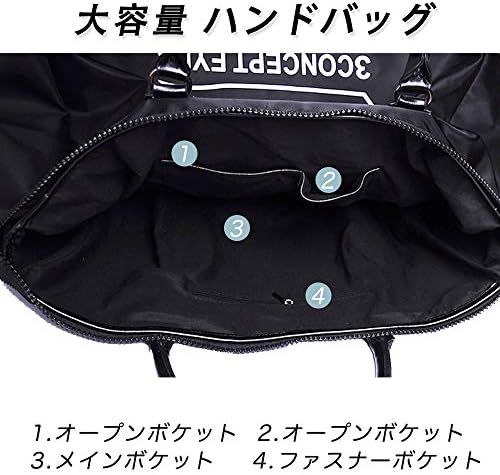 【大容量 ハンドバッグ】開口部はジッパー式になっており、中身が飛び出すのを防止できます。内側にはメインポケットが1つ、ジッパーポケットが1つ、オープンポケットが2つあります。メインポケットにはノートパソコン、A3用紙も十分収納可能です。見た目通りの収納力と使い勝手の良さです♪生地は裏地付きの作りで、内側の生地も丈夫で破れにくくしっかりした作りです。