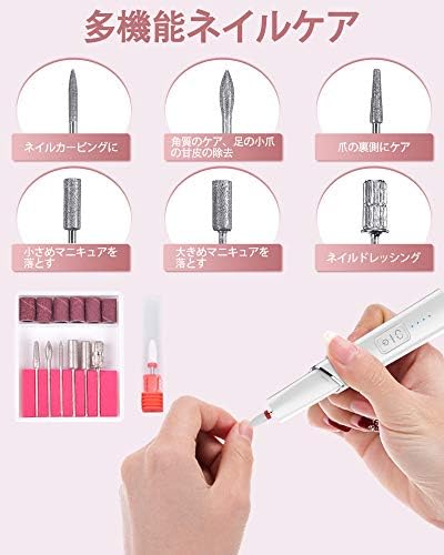 ✅[ 7 in 1多機能ネイルケアセット]: 工具なしでドリルビットを簡単に交換でき、引き抜いて挿入するだけです。角質のケア、足の小爪の甘皮の除去、細部のルースキューティクル、ネイルケアやアクリルの整形、リペア、アクリルの長さ調整、アクリルフレンチのスマイルラインの削り出し、チップのサンディングなどはすべでできます。 オシャレデザイン上にコンパクトでお友達、彼女、同僚、先輩、お母さんへ誕生日プレゼントに最適です!