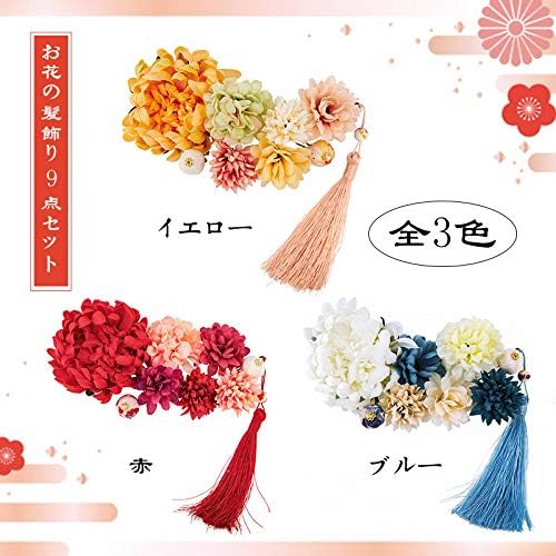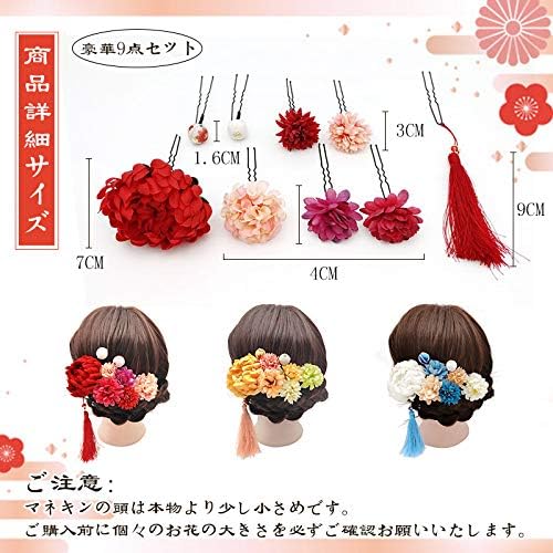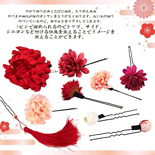 【和装髪飾りセット内容】髪飾9点セット。Uピン仕様の髪飾りは簡単に取り付けられやすいです。綺麗に梱包しますので、新年、誕生日、クリスマス、バレンタインデーギフトとしてお勧めます。浴衣や着物などの和服だけでなく、普段使いにも便利な一本タイプです。