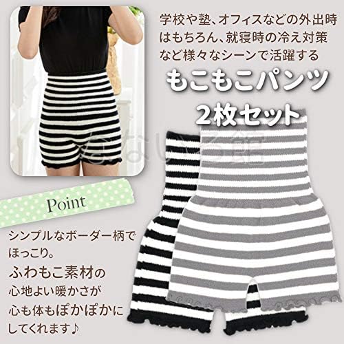 学校、オフィス、就寝時の冷え対策など様々なシーンで活躍するレディース向けもこもこパンツです。 ブラックとホワイトのボーダー2枚組です。