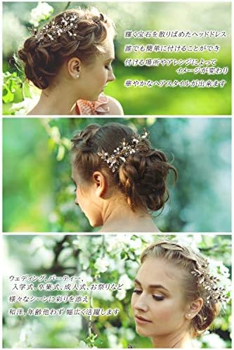 【気品のあるこだわりビジューヘッドドレス】ハンドメイドで丁寧に編みこんだ光沢のビジュー、イミテーションパールが輝く美しさを最大限に生かしたアンティーク風デザインのヘアアクセサリーです。高級感ある上品な輝きは、女性の和服スタイルやドレススタイルを際立たせます。普段使いにも可能なシンプルなアイテムだからこそ、使い心地や機能性、デザインの美しさにこだわっています。誰でも手軽に、美しいヘアアレンジをお楽しみいただけます。綺麗な見た目のデザインで、手作業で磨き上げたビジューやパールを細いワイヤーにたくさん付いて、ワイヤーを曲げて簡単に好みの角度に変えることができ、キラキラと光沢が輝いて優雅で上品感を演出し、存在感が抜群な髪飾りです。