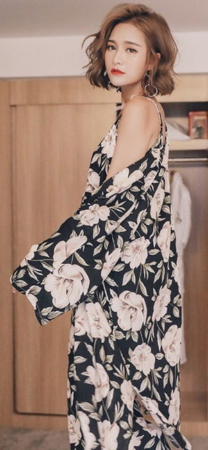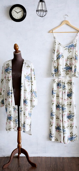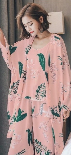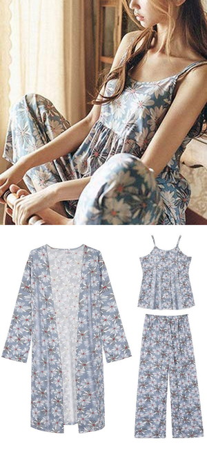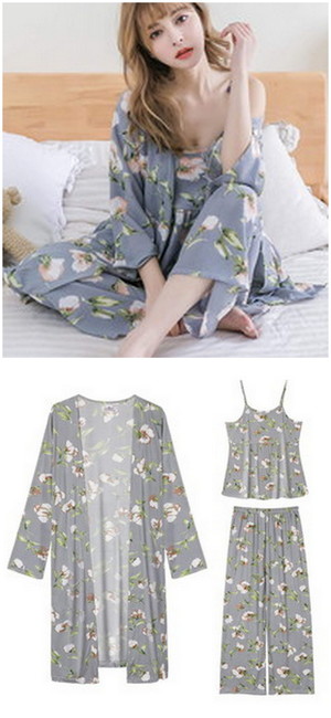 大人っぽく上品なキャミソール・ガウン・パンツ 3点セットのルームウェアです♪