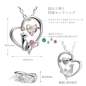 ネコの上部には動くたびにキラキラ煌めく、ハートカットのスワロフスキー天然トパーズダンシングストーンを使用しております。お色は女性から絶大な人気を誇るミスティローズ。眩い光に輝く人気のレディースネックレス。自分へのご褒美にも大切な方へのプレゼントにも大変喜ばれる商品です。