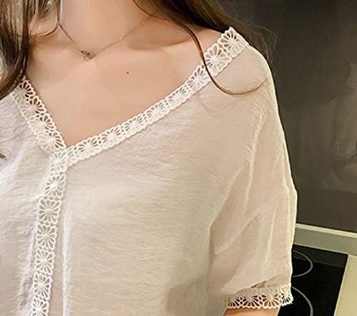 [1/2style (ニブンノイチスタイル)] 五分袖 シフォン レース シャツ ブラウス チュニック トップス レディース