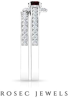 ブライダルリングセットは、4MMのラウンド型ガーネットで美しく作られています。ソリティアは、ハローとサイドストーンセッティングとしてラウンドシェイプのダイヤモンドを囲んでいます。ユニークなハーフエタニティバンドに小さなラウンドダイヤモンドをセットした別のリング。ウェディングセットには、婚約指輪とダイヤモンドの結婚指輪の両方があります。クラウンセッティングリングはソリッド14Kゴールド製で、4プロングセッティングが施されています。この素敵なリングセットをつかみ、あなたの女性にもう少し愛させてください。