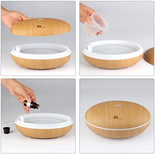 1byone アロマディフューザー 超音波式 加湿器 350ml 次亜塩素酸水対応 卓上加湿器 7色変換LED搭載 空焚き防止 ミスト量調節可能 部屋 会社 ヨガなど各場所用 木目調