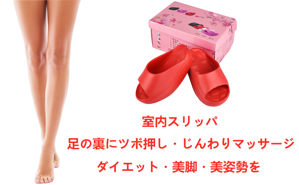 2019進化版 ダイエットスリッパ バランスサンダル R形状底面 かかとのない設計 履くだけで美脚・美尻・瘦身 レッド M(24-25cm)