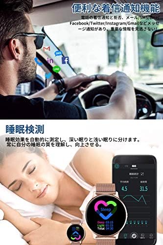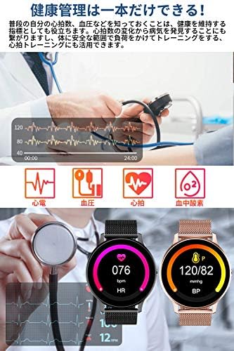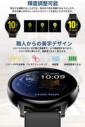 【便利な通知機能】:人工知能AIチップ搭載するスマートウォッチは、電話、LINE、SMS、Twitter、Facebook、Instagramなどの通知は、バイブでお知らせします。大切な連絡を見逃しません。メッセージ、発信者の名前も表示されます。また、会議中や電車中に、電話を受けることが不便である場合、このスマートブレスレットで簡単に拒否できます。 1.2インチの大きい文字盤と高画質で、バッテリーが大容量であり、長時間連続使用でも大丈夫です。