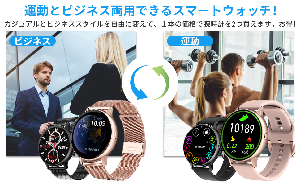 カジュアルとビジネススタイルを自在に切り替えられる時計バンドがあり、しかも14種類の文字盤を自由に切り替え可能、自分のスマートウォッチを格好いいものにしたいという人もいって欲しいですか。このスマートウォッチは本当に助かれます。 本体でお気軽に設定できるので、毎日の気分チェンジに最適スマートウォッチになります!