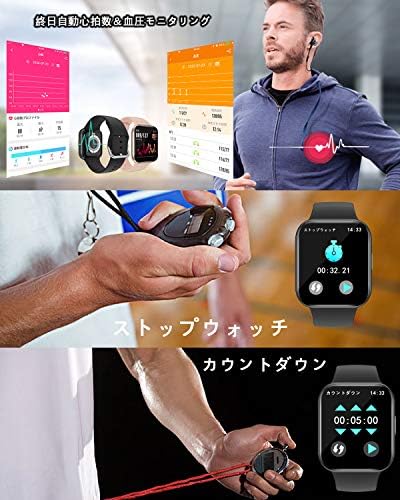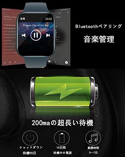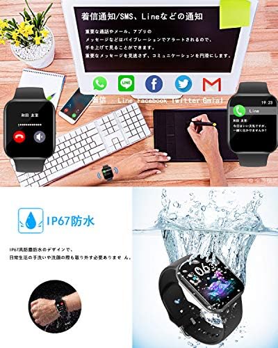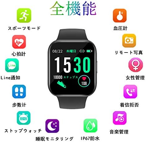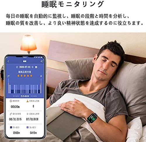 【活動量計&多機能】日付表示、歩数、運動記録、消費カロリー、心拍数、睡眠検測、電話の着信通知と拒否、Line/Facebook/Twitter/SMS/Gmailなどメッセージ通知、女性生理期管理、ストップウォッチ、タイマー、座りすぎ注意、遠隔撮影、腕上げ点灯、目覚まし時計、携帯探し、音楽制御、アラームなど生活面の機能も持っています。Bluetoothで同期すれば、アプリで10種類の運動データが見え、毎日の生活習慣の改善や日常健康管理に役立ちます。 ご注意:スマートウォッチの起動時に日本語ではなく、スマートフォンとBluetoothを接続すると、自動的に携帯電話の言語を同期させます。
