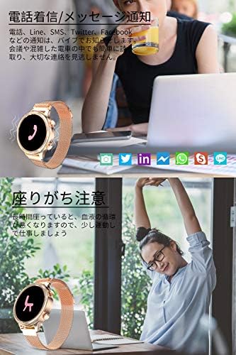 【電話/メッセージ受信知らせ】このスマートウォッチを携帯と接続すると、LINE、Twitter、Facebook、Gmail、Instagram、Whatsapp等様々なアプリからのメッセージが受信できます。携帯をカバンから取り出さなくても、このスマートウォッチに直接、送信者と具体のメッセージ内容を読み取れます。このスマートウォッチ レディースは明るさを三段階に調整できますので、太陽を当てでも、腕を上げると、時計の画面を自動的に調整して、メッセージ内容をはっきり見えます。また、このスマートウォッチは三段階のダイブ強さがありますので、客様は自分の一番好きな強さを選べればよろしいです。