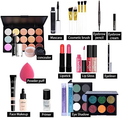 【コンプリートメイクセット】:毎日のメイクに合わせて、マルチカラーのマットアイシャドウとキラキラアイシャドウ、リップグロス、アイブロウクリーム、メイクペン、コンシーラー、アイクリームなどがセットになっています。