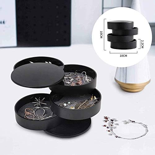 4 Tiers Jewelry Box with Lid Accessory Case, Ring, Earrings, Women’s, Accessories, Storage Box, Tabletop, Plastic, Compact, Interior (Black)