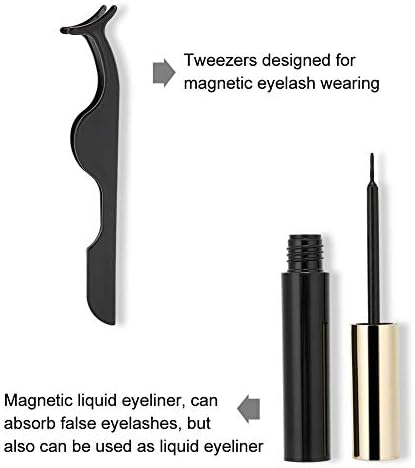 機能: 磁気まつげ装着用に設計されたピンセット、便利な操作。磁性液体アイライナーは、つけまつげを吸収できますが、液体アイライナーとしても使用できます。接着剤不要、強力な磁力、しっかりと耐久性、安全で便利な、細かい髪質。5組のつけまつげを含んで、あなたの異なった要求を満たします。