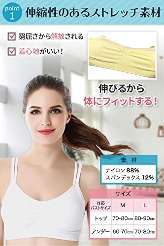 【ノンワイヤー】窮屈感、締め付け感から解放でき伸縮性があるのでピッタリフィットします。汗による不快感を軽減でき、通気性が良く締め付け感がないので寝ているあいだなどナイトブラとしても活用できます