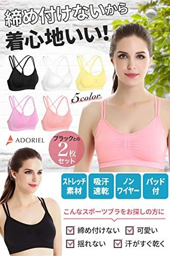 ADORIEL ヨガウェア レディース スポーツブラ 揺れない ナイトブラ ヨガブラ 速乾 伸縮 ノンワイヤー スポーツウェア 2枚組