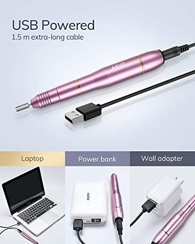 AEVO電動ネイルマシンキット (2020)改良版 usb充電式 爪磨き研磨ポリッシャー 11x交換可能なビット1xクリーニングブラシ 36xサンディングバンド 多機能ネイルドリル 20000rpm高速回転 無段階スピード調整可能 ネイルマシン 初心者/プロ用 低振動 低騒音 角質除去 ピンク
