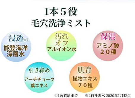 afuru Pore Cleansing Mist is a mist type cleansing lotion dedicated to preventing pores. The “Noto Ocean Deep Layer Water”, “Arionic Water”, “20 Types of Amino Acids, and “70 Types of Plant Enzymes” removes excess sebum and makeup stains from your pores, and also moisturize. Super easy pore care with just 10 pushes and rinse off after waiting for 15 seconds.