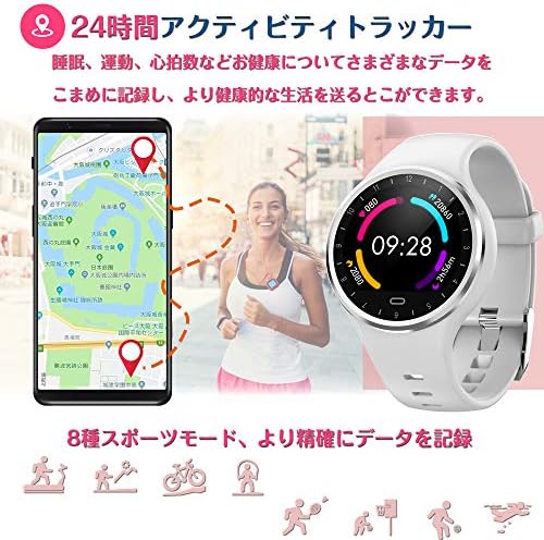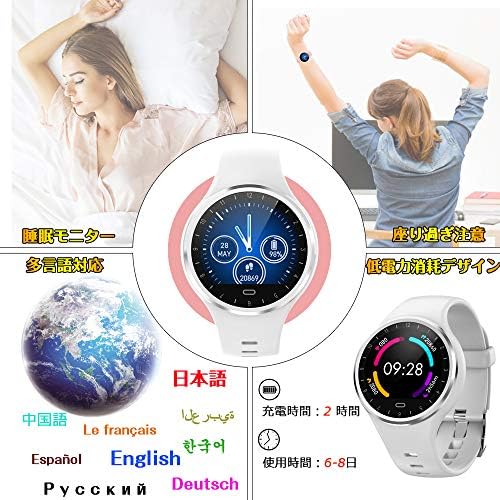 【スマートウォッチ 最新】AMYSPORTSスマートウォッチ最新モデル。1.22インチIPSカラースクリーンを採用された丸型文字盤、シンプルでかわいい、視認性もバツグン!低アレルギー性素材のオリジナルデザインウォッチバンド(白、ピンク)は敏感肌にも優しい、清潔感があります。大きい文字盤ながらも重さわずか45g、普段付けると違和感が少なく、そして激しい運動でも手首にピッタリフィットします。スマートブレスレットだけではなく、おしゃれな腕時計としても使えます。スマートウォッチ 腕時計 line スマートウォッチ iphone対応 android対応 スマートブレスレット レディース メンズ