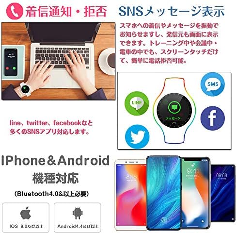 【スマートウォッチ iphone対応 android対応】Android4.4/iOS 9.0以上、Bluetooth4.0以上、対応のスマートフォンに適応しています。スマートウォッチ Xperia、iphone、Galaxy、ASUS、huawei、シャープまで多数機種に対応ができます。【1年間安心保証】を提供しています。万が一商品不具合のようでしたら、販売店にメールでお気軽にご連絡ください。スマートウォッチ 腕時計 line スマートウォッチ iphone対応 android対応 スマートブレスレット レディース メンズ。