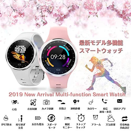 AMYSPORTS スマートブレスレット レディース メンズ 最 新モデル。1.22インチIPSカラースクリーンを採用された丸型文字盤、シンプルでかわいい、視認性もバツグン!低ア レルギー性素材のオリジナルデザインウォッチバンド(白、ピンク)は敏感肌にも優しい、清潔感があります。大きい文字盤ながらも重さわずか45g、普段付けると違和感が少なく、そして激しい運動でも手首にピッタリフィットします。スマート ブレスレットだけではなく、おしゃれな腕時計としても使えます。スマートウォッチ 多機能(本体機能): 腕時計、心拍、歩数、運動距離、消耗カロリーなど活動量計機能、そしてスマホの同期すれば、着信通知、SNSアプリメッセージ表示など様々な機能が付きます