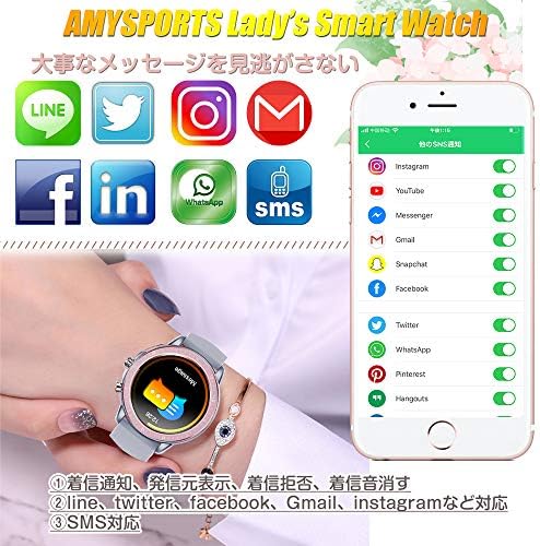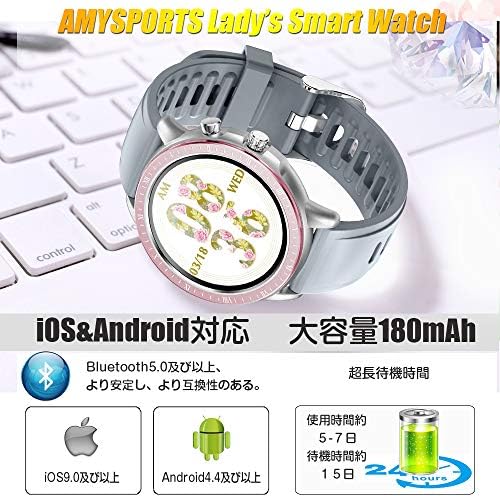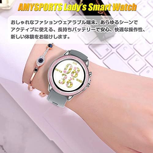 AMYSPORTSレディーススマートウォッチはBluetooth5.0搭載、今までのBluetooth4.0スマートウォッチと比べると、接続がより安定、データ転送速度も大幅に向上します。 Android機種にもiPhoneにも連携できます。自分へのご褒美、彼女や女性友だちへのプレゼントとして最適!当商品12カ月保証付き、使用方法などについて、気軽く弊店に連絡してください。