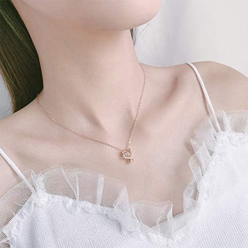 Angie 猫 ネックレス レディース ハローキティネックレス レディースアクセサリー キティ ペンダント スターリングシルバー99.9% 18Kピンクゴールドコーティング 5AジルコニアCZ 誕生日 クリスマスプレゼント ギフト包装付 (ピンクゴールド)