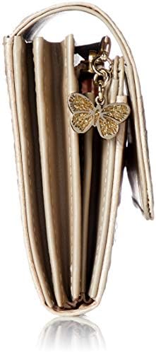 ANNA SUI 定番のエナメルwalletライン。薔薇とハートのエンボスに多色の柔らかな色合いのプリントを組み合わせた、可愛らしいデザイン。ファスナー部の大きなバタフライが魅力なポイントです。