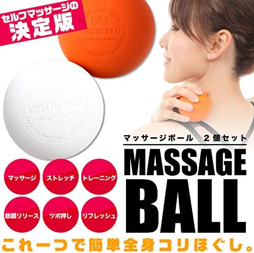 オレンジとホワイトの2個セットで首の付け根、腰、両足など同時にマッサージできます。The set includes two balls, orange and white, so you can massage the base of a neck and hip or both legs at the same time.