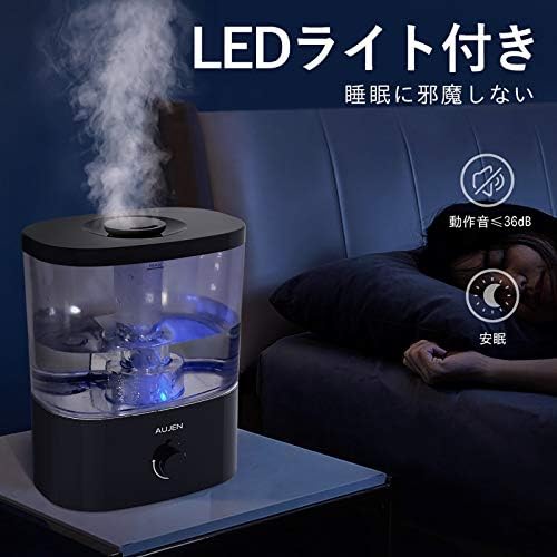 Aujen 5L 超音波加湿器 大容量 加湿器 アロマ 卓上加湿器 除菌 アロマ対応 上から注水タイプ 空焚き防止機能 霧量調節 静音作業 LEDライト付き